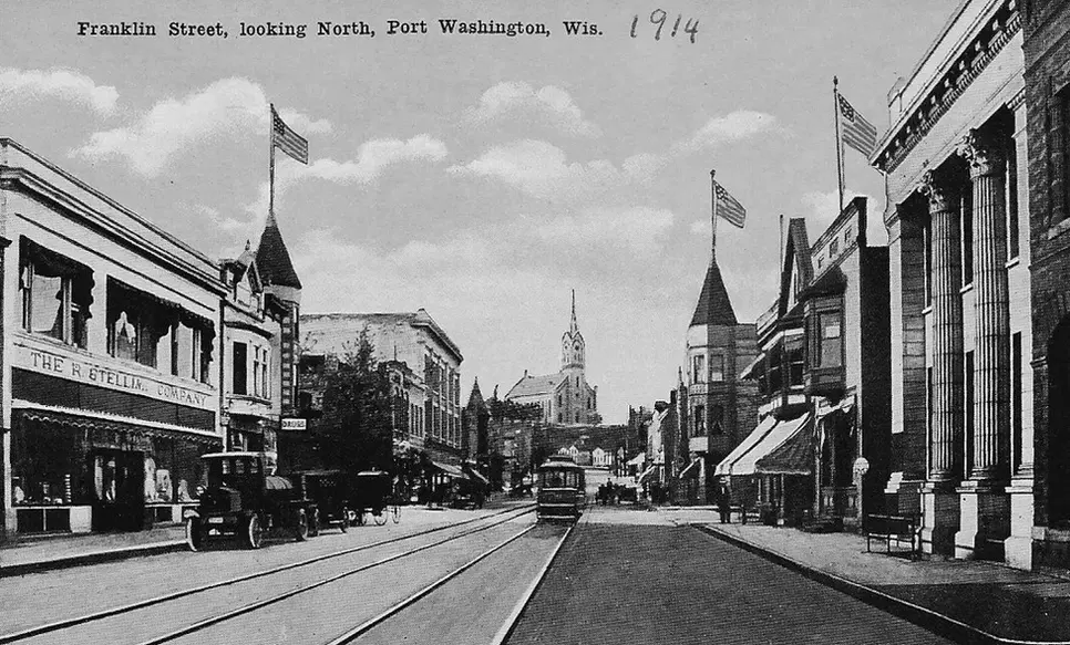 Condominiums occupy the site of three buildings, two of which were occupied by the iconic Harry’s Restaurant. All three sites were previously frame buildings that burned in the Wisconsin Chair Company fire of 1899. All three were rebuilt in cream-colored brick from a local brick manufacturer. The Peter Pelt Building at 126 N Franklin Street was built in 1901. The Joseph Schuder Building at 128 N Franklin Street, was built in 1900. Schuder’s Bakery was the occupant beginning in 1900.